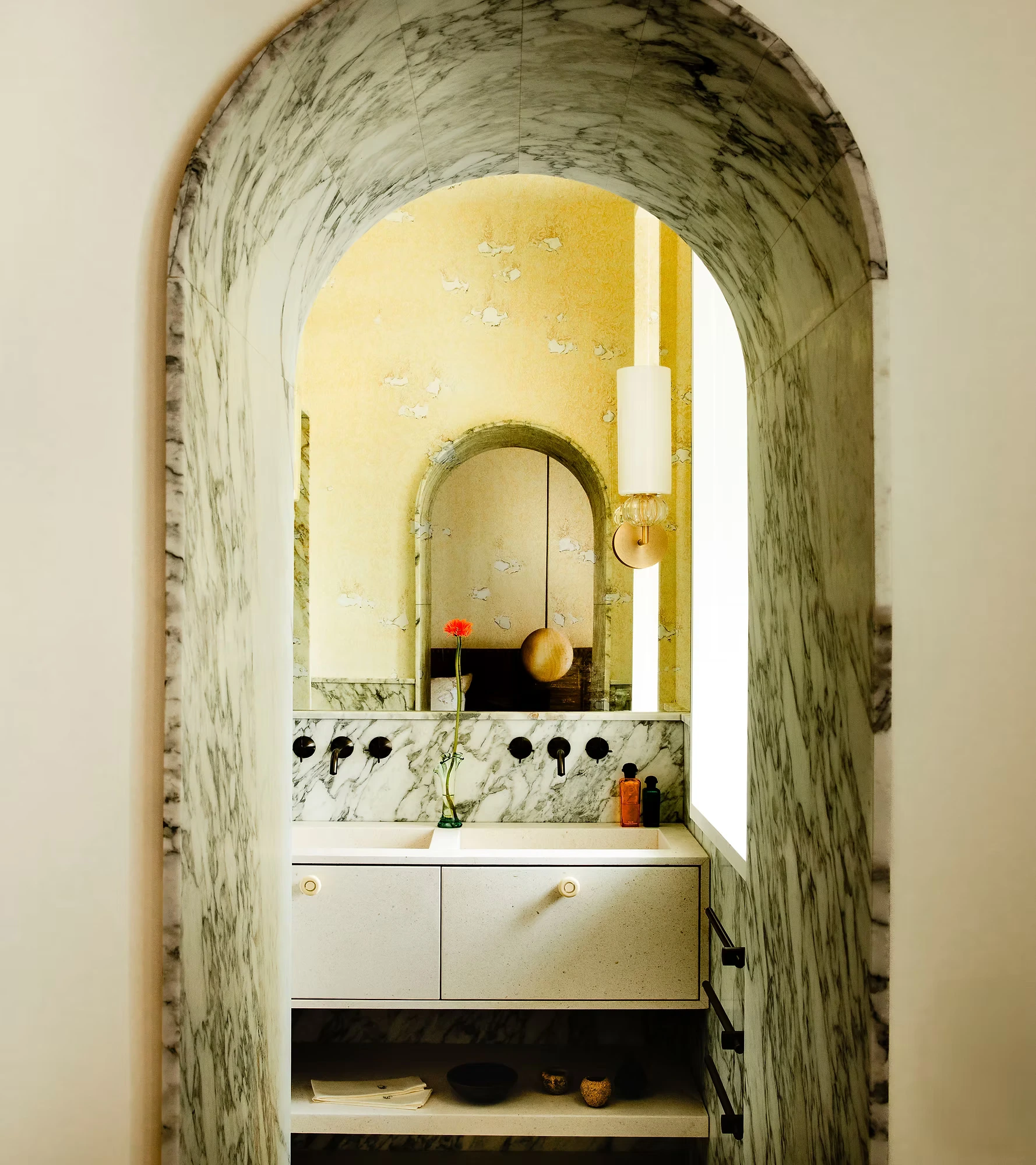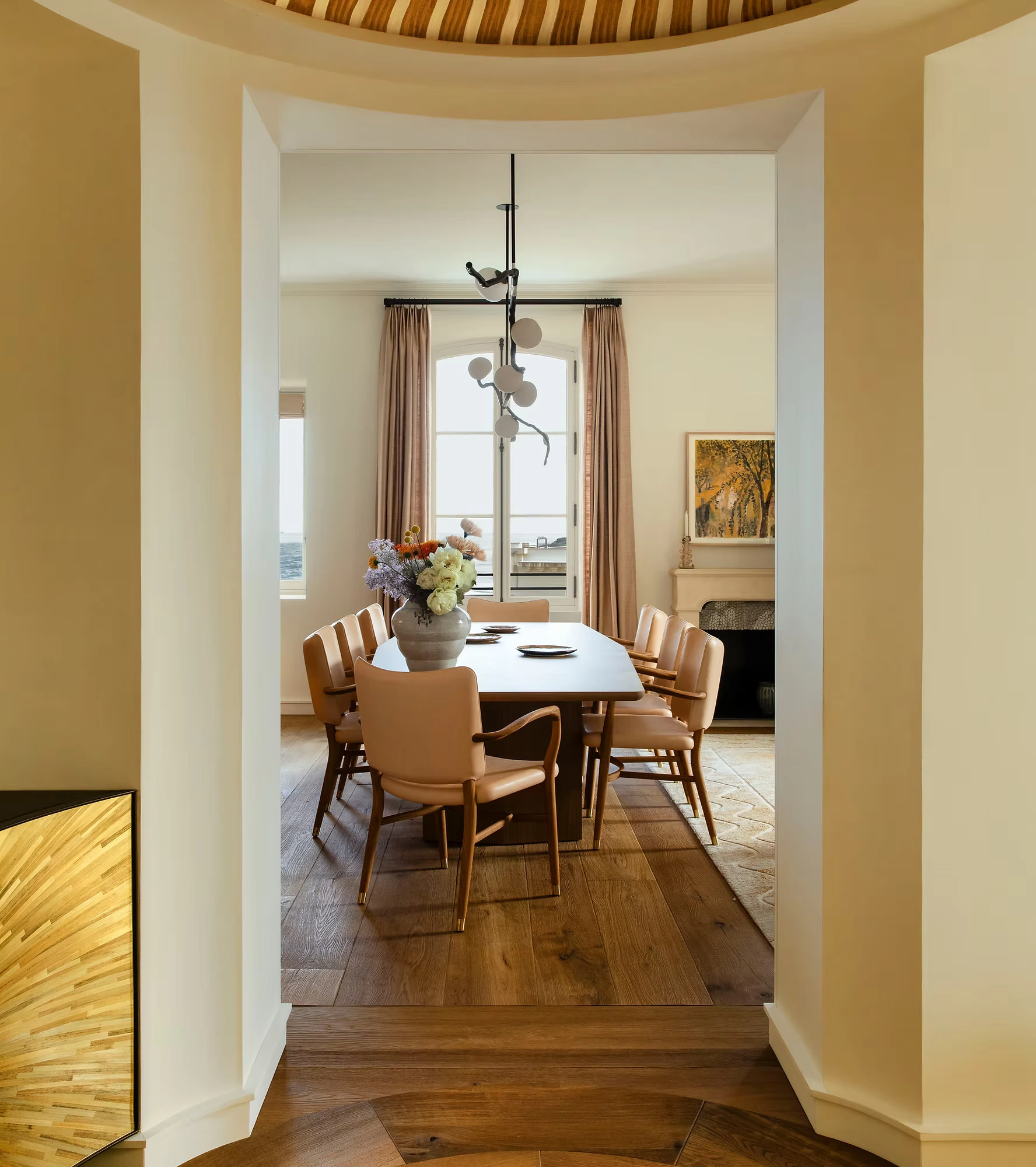 Dans ce bel immeuble du 19e, se trouve un appartement atypique d'origine et riche d'une superbe vue sur l'océan, au-dessus du Casino. L’objectif a été de créer un lieu de vie élégant, singulier, intemporel et connecté à son environnement. Un espace qui laisse respirer la lumière, qui dialogue avec la mer sans tomber dans le cliché balnéaire. Nous avons travaillé autour d’un univers à la fois sophistiqué et organique, avec des matériaux bruts mais nobles, des teintes naturelles, des lignes fluides, inspirées par le mouvement de l’eau, les roches, les éléments. La collaboration avec des artisans d'art souligne également le souci du détail et la qualité des finitions, ce qui contribue au raffinement et à la préciosité de cet appartement. Photos - Alice Mesguich